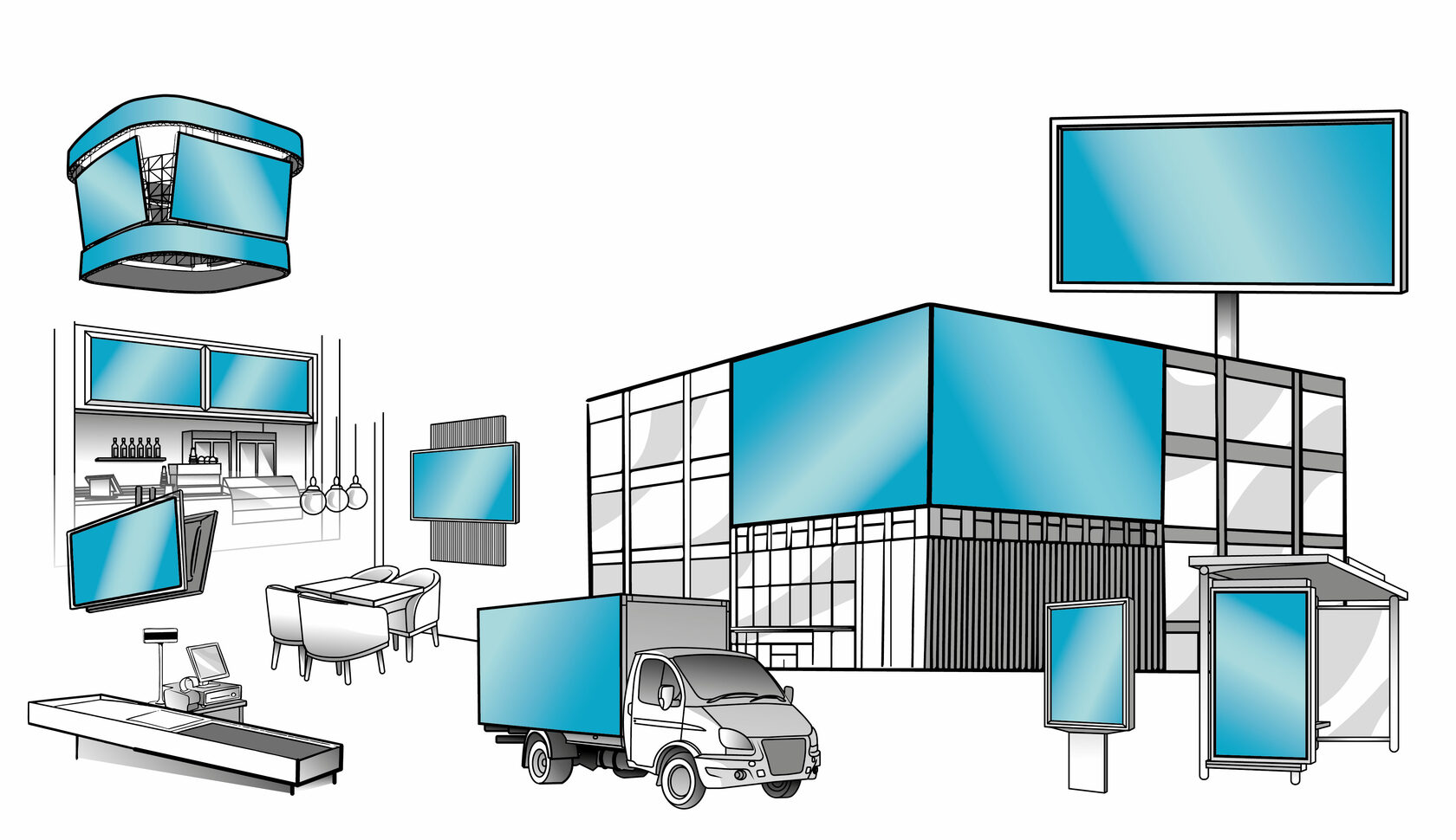 Наша компания занимается производством видеоконтента для различных поверхностей.